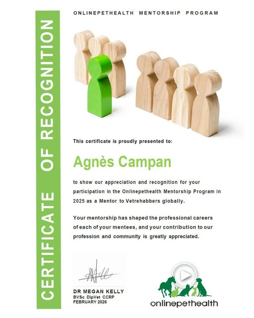 Honoured to continue my mentoring journey with Onlinepethealth and to receive my 2025 Mentor Certificate.